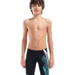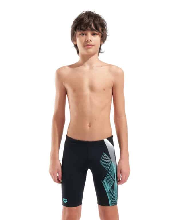 Diseñado para durar, nuestro jammer Sea Water para niños combina un diseño de vanguardia con materiales reciclados. Fabricado con un tejido avanzado resistente al cloro, este bañador resiste los entrenamientos intensos y las frecuentes sesiones de natación. Su diseño oscuro y llamativo se destaca por un estampado gráfico con el icónico logotipo de tres diamantes de arena. Ya sea para entrenar o competir, es perfecto para los jóvenes nadadores que quieren llegar lejos.